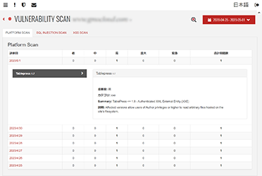 の有無を調べられます。また、既知の脆弱性が判明しているソフトウェア・バージョンの有無もお調べいたします。脆弱性のあるバージョンのWordPressを使い続けると、サイトの乗っ取り、不正改ざん